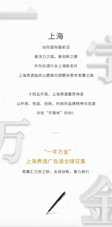 问鼎奖(1名):最终被采用的广告语,将获得每字1万元人民币的终极现金大奖,并授予“米博app官网登录入口-米博(中国)”企业大使,尊享全年最高会员礼遇,同时获得米博app官网登录入口-米博(中国)青澄黄贵酿1套(天青、阳澄、月黄)及价值14000元美酒礼券包等超值权益。